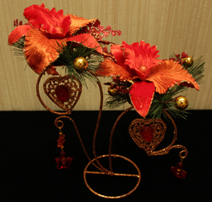TLN1201 Подсвечник с красными цветами и подвесками Декорация Н*L*W=10*27*9