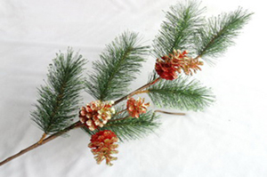 TLN1624 Сосновая ветка с шишками, со льдинками и с красным напылением, В Декорация Н*L*W=82*
