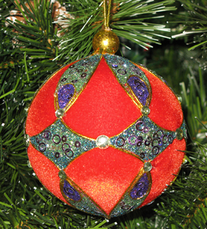 TLN1734 Подвесной шар с изумрудным орнаментом, стразами красный бархат D=100mm