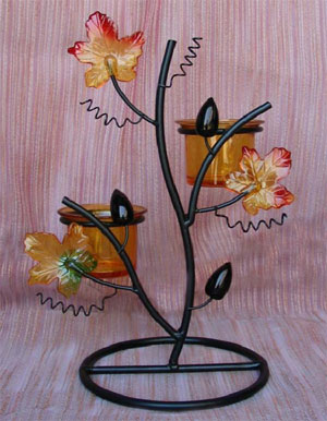 TLV372 SY73174 Подсвечник двойной Тюльпан изготовлен из металла и цветного стекла